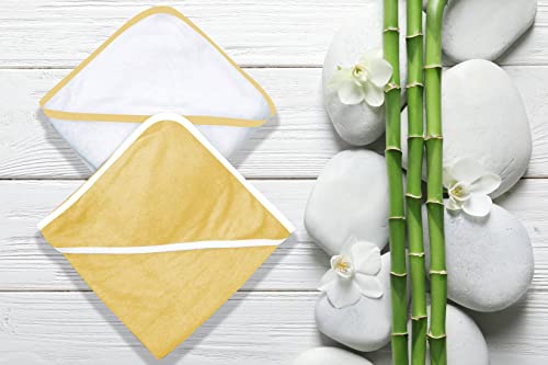 BAMBOO QUEEN 2 Pack Premium Bamboo Baby Bath Towel – Ultra Soft Hooded Towels for Babies,Toddler,Infant – Newborn Essential -Perfect Baby Registry Gifts for Boy Girl (White and Yellow, 30 x 30 Inch)