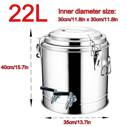 Specification: 22L Insulated Beverage Dispenser with 2 Taps, Stainless Steel Milk Tea Bucket Hot Water Beverage Dispenser, Coffee Urn Commercial Beverage Dispenser for Hotel Restaurant Party