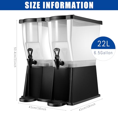 Specification: 6 Gallon Double Tank Drink Dispenser Plastic Beverage Dispenser with Spigot Commercial Juice Dispenser Catering Supplies for Coffee Tea Cold Water Milk Juice, Black