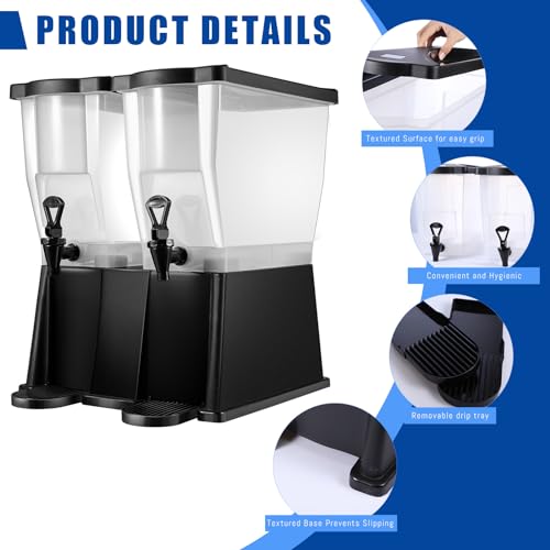 Heavy Duty Construction: highlighting the quality plastic material, the juice dispenser demonstrates robustness and long lasting durability; Its impressive cold resistance enables it to hold a wide range of refreshing beverages; Moreover, the black and clear color offers a sleek and stylish aesthetic, complimenting any event or party decoration