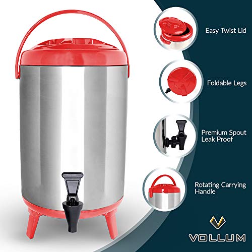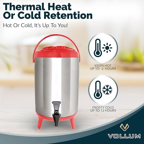 Specification: Vollum Stainless Steel Insulated Beverage Dispenser – Insulated Thermal Hot and Cold Coffee Carafe – 10 Liter Drink Dispenser with Spigot for Hot Water, Tea & Coffee, Cold Milk, Juice & More RED
