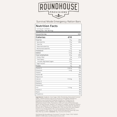 Specification: Roundhouse Provisions Survival Mode Emergency Rations Bars. Bug-out bag, Emergency kit, Hiking kit or no prep nutrition bar, Lemon shortbread, whole grain sorghum, 14 vitamins and minerals. 5 year shelf life, Pack of 6