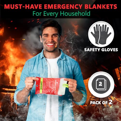 Emergency Fire Blanket, 2 Blankets with 2 pairs of Gloves, Fire Safety Supplies Kit, Fire Extinguisher Blanket, Fire Blankets Emergency for Home, Kitchen, Grill & Camping 39”x39”