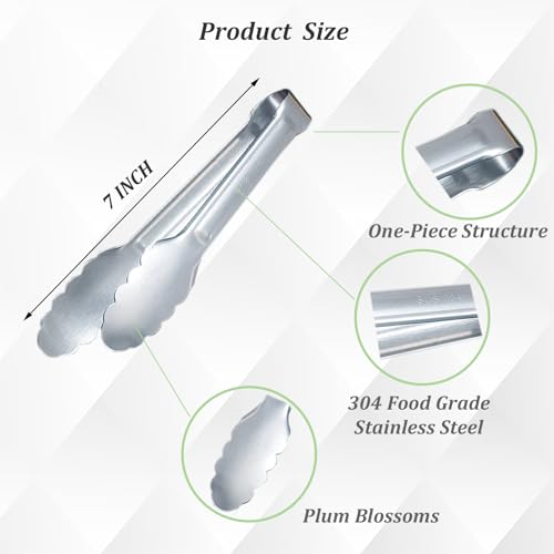 Specification: Sunenlyst Kitchen Tongs, 6Pcs Tongs Stainless Steel for Serving Food, Metal Tongs Small Tong for Buffet, Salad, Ice, Appetizer, Serving Utensils for Food (7Inch)