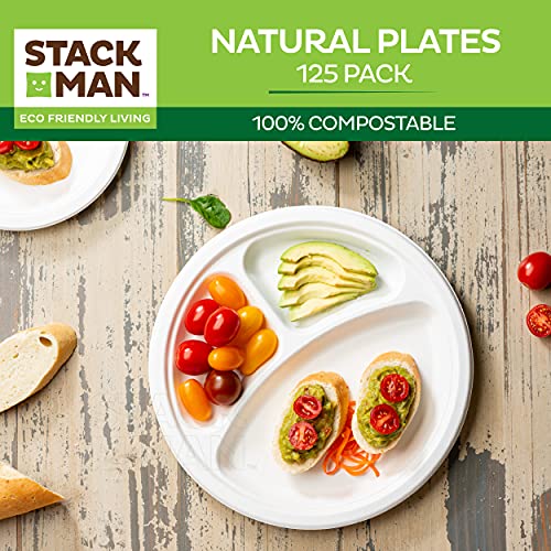 ![100% Compostable Disposable Paper Plates [125-Pack] - (PFAS-Free) - (BPI Certified) - [10 Inch] Heavy Duty, Eco-Friendly, Biodegradable Bagasse Dinner Plates - Natural Brown 10" Plate by Stack Man - Image 3](https://m.media-amazon.com/images/I/51jLkS9aN2S.jpg)