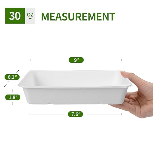 Specification: 50 Pack 30 oz Deep Dish Paper Plates for Pasta Nacho Baked Potato, Deep Rectangle Disposable Heavy Duty Plates for Food Catering (WHITE)