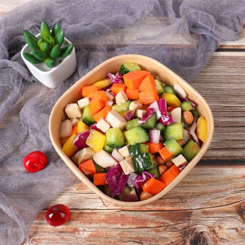 Packing: 25OZ Kraft paper bowls, pack of 50 bowls and 50 PP lids. Bowls are made with high quality Kraft paper.
