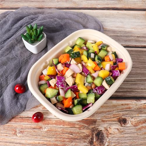 44OZ Disposable bowls with lids, Sugarcane Fiber Paper Bowls take away food containers meal prep food storage deli container 50 PACK